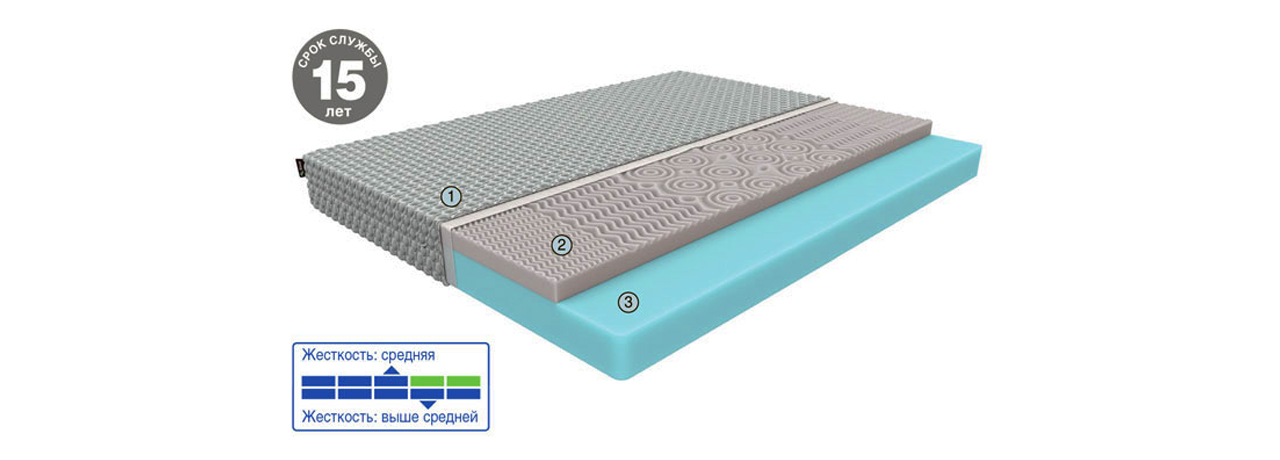 Вы легко можете поменять положение тела во время отдыха за счет отсутствия эффекта утопания. Три слоя в матрасе собраны с учетом плавного перехода жесткости пены от мягкого комфорта к упругой поддержке. Сочетание материалов дарит великолепное чувство максимального расслабления для быстрого засыпания и крепкого сна. Основа матраса выполнена из высокоплотной и жесткой пены для идеального распределения нагрузки и надежной поддержки.